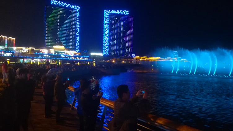 近日,位于城市陽臺景區(qū)的音樂噴泉吸引了眾多市民游客前往觀賞,視頻和美照刷爆了不少人的“朋友圈”,一到噴泉開始的時間,整個廣場人頭攢動,吸引大批游客流連忘返。位于景區(qū)中央湖的音樂水秀噴泉,是西海岸新區(qū)最大的音樂噴泉,周一至周四每天20:00至20:30播放一場,周五至周日或節(jié)假日每天19:30至20:00,20:30至21:00播放兩場。
