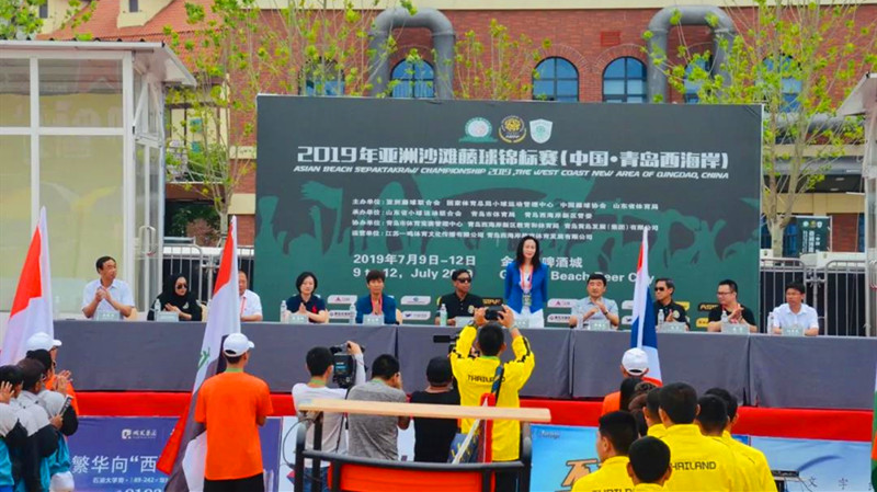7月9日,2019亞洲沙灘藤球錦標(biāo)賽(中國·青島西海岸)在金沙灘啤酒城開賽。來自中國、越南、泰國、印度尼西亞、印度、馬來西亞、伊拉克7個國家的12支代表隊伍將為大家奉獻一場精彩絕倫的視覺盛宴。