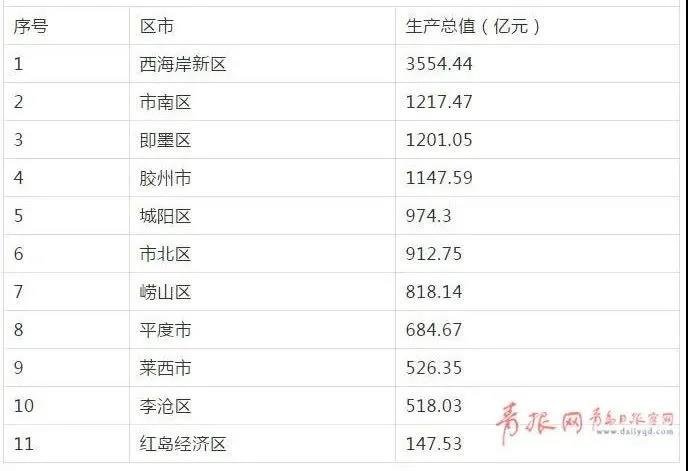 近日,青島市統(tǒng)計(jì)局發(fā)布了“2019年4季度分區(qū)市地區(qū)生產(chǎn)總值”,西海岸新區(qū)、市南區(qū)、即墨區(qū)、膠州市等4個(gè)區(qū)市GDP過(guò)千億元。