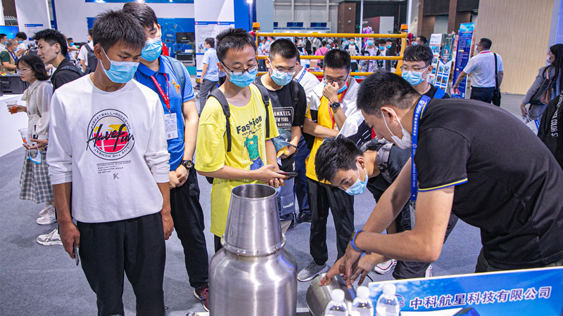 在中挪未來創(chuàng)新科技(青島)有限公司展區(qū),參觀者們正在通過視頻了解船體除銹機器人的工作過程?!八茏詣游皆诖w上,把生銹的大船清理的干干凈凈?!币晃恍∨笥迅嬖V記者。