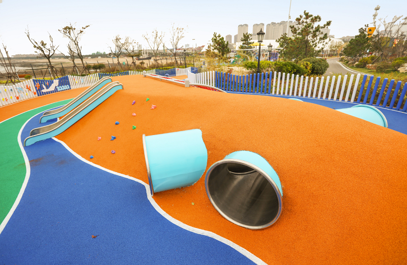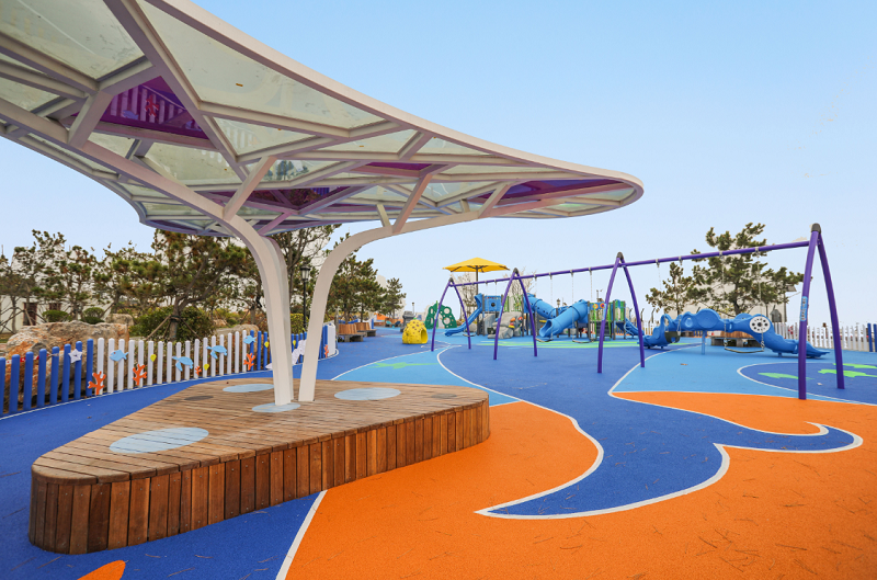 據(jù)了解,該游樂場總面積約1730平方米,位于啤酒城啤酒大道南端、愛情海灣東側(cè),所有游樂設(shè)備都是非動力,更加安全舒適。這里不僅是孩子們的樂園,更是大人們休閑放松的好去處。設(shè)計師充分利用了海邊地理優(yōu)勢,營造了獨具特色的濱海植物景觀,是親子游玩不錯的選擇。