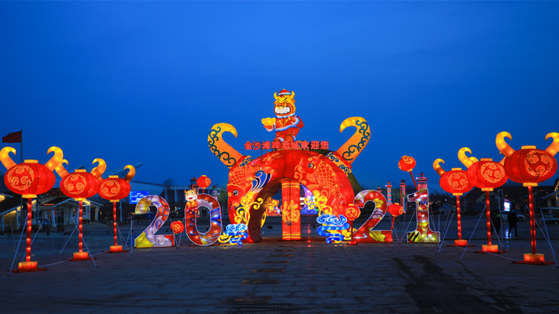 此次啤酒城氛圍營造彩燈均來自四川省自貢市。自貢燈會距今已有近千年的歷史,是國家非物質文化遺產(chǎn),自貢彩燈以“形色聲光動”的藝術特色著稱,構思巧妙、制作精巧,燈景交融、熠熠生輝,具有“天下第一燈”的美稱。此次借助自貢彩燈語言、融入傳統(tǒng)文化元素、利用啤酒城特有背景設置的特色濃郁的燈飾亮化作品,形成燈光璀璨的節(jié)日景觀,營造了喜慶歡樂的氛圍,將成為市民迎春祈福、休閑娛樂、網(wǎng)紅打卡的新去處。