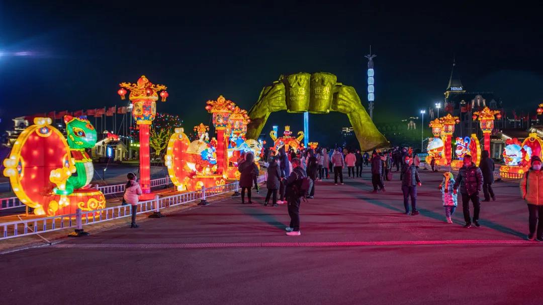 首次打造大型自貢彩燈藝術(shù)亮化,推出9個(gè)主題50余個(gè)造型,營(yíng)造了喜慶歡樂的節(jié)日氛圍。強(qiáng)化景區(qū)運(yùn)行保障,配備專業(yè)安保、消防、工程團(tuán)隊(duì)24小時(shí)應(yīng)急值守,重點(diǎn)加強(qiáng)疫情防控、消防安全、現(xiàn)場(chǎng)秩序管理,營(yíng)造安全有序的游園環(huán)境。酒吧街、不是書店、國(guó)際啤酒匯超市等經(jīng)營(yíng)場(chǎng)館正常營(yíng)業(yè),為市民和就地過年人員提供休閑游樂的好去處。濃厚的節(jié)日氛圍也吸引了中央電視臺(tái)《新聞聯(lián)播》和《中國(guó)新聞》、山東電視臺(tái)、青島電視臺(tái)及各類媒體的廣泛關(guān)注和聚焦報(bào)道。