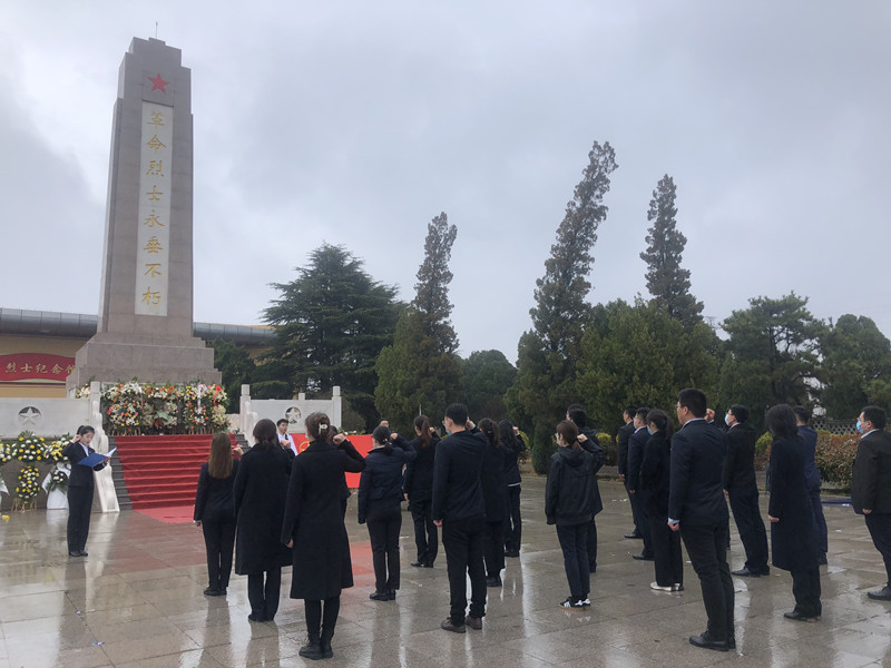 在烈士陵園,全體黨員團(tuán)員青年在革命烈士紀(jì)念碑前,高舉右手莊嚴(yán)宣誓,向革命烈士敬獻(xiàn)寄托哀思和敬意的花籃,表達(dá)對革命烈士的無限敬仰。