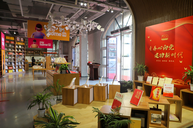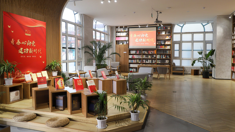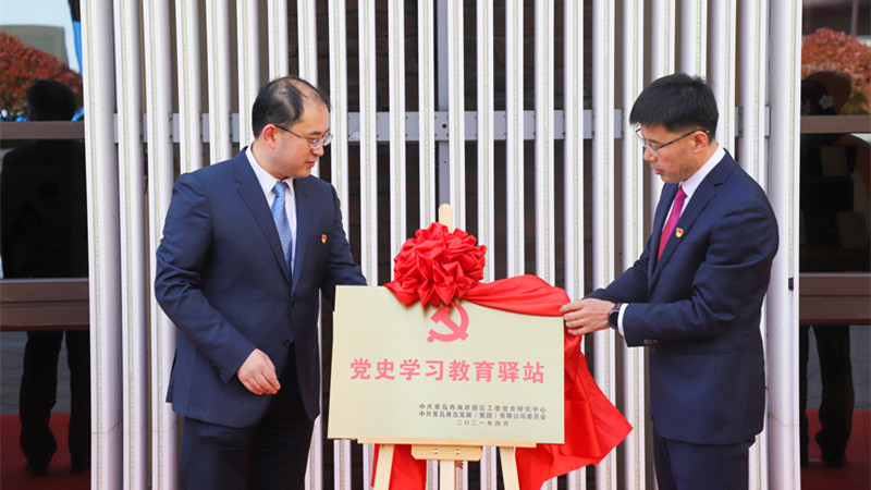 4月15日,青島西海岸新區(qū)“黨史學(xué)習(xí)教育驛站”在金沙灘啤酒城不是書店揭牌啟用。
