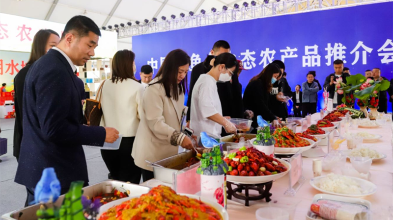 4月30日上午,魚臺生態(tài)農(nóng)產(chǎn)品推介會暨雙招雙引洽談會在金沙灘啤酒城啟動。現(xiàn)場設(shè)置了魚臺生態(tài)農(nóng)產(chǎn)品品鑒、展銷、推介直播和雙招雙引洽談區(qū)等,魚臺縣魚米集團、孝賢蝦皇龍蝦、孔府宴酒等20余家當(dāng)?shù)刂髽I(yè)攜魚臺綠色大米、生態(tài)小龍蝦、魚臺毛木耳等名特優(yōu)農(nóng)產(chǎn)品亮相。