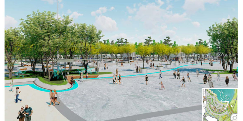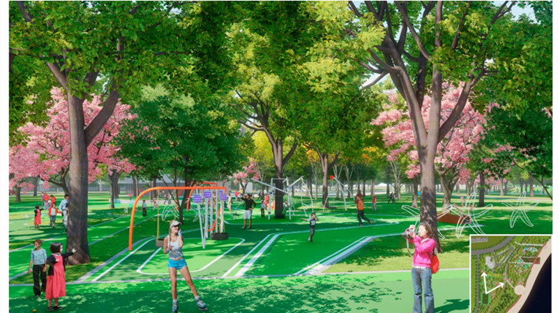 城市陽(yáng)臺(tái)景觀提升工程聚焦承載慶典集會(huì)與日?;顒?dòng)的彈性使用需求,合理利用現(xiàn)有空間、增加互動(dòng)景觀,打造可以交互共享的公共空間。工程總面積3.7萬(wàn)平方米,總投資3500萬(wàn)元,包括市民文化廣場(chǎng)提升和新建體育公園兩部分。其中,市民文化廣場(chǎng)提升面積2.3萬(wàn)平方米,建設(shè)藝術(shù)休閑區(qū)和文化廣場(chǎng)區(qū),引入展覽、文創(chuàng)工作室、咖啡廳書吧、創(chuàng)意圖書館等功能業(yè)態(tài)。體育公園面積1.4萬(wàn)平方米,將建設(shè)籃球場(chǎng)、五人制足球場(chǎng)、滑板場(chǎng)等。同時(shí),還將建設(shè)兒童樂(lè)園,為孩子們提供理想的游樂(lè)場(chǎng)所。