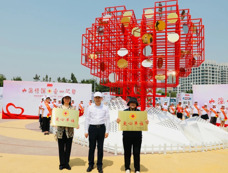 6月22日,“山海情深·愛(ài)心匯聚”雕塑落成暨青島愛(ài)心廣場(chǎng)命名儀式在西海岸新區(qū)城市陽(yáng)臺(tái)景區(qū)成功舉行。青島市紅十字會(huì)、新區(qū)工委、青島市衛(wèi)健委、青島市自然資源和規(guī)劃局、中國(guó)雕塑院青島分院、青島大學(xué)醫(yī)學(xué)部、青島黃發(fā)集團(tuán)、青島城運(yùn)控股集團(tuán)有限公司等領(lǐng)導(dǎo)嘉賓、雕塑設(shè)計(jì)者以及各區(qū)市紅十字會(huì)、新區(qū)有關(guān)部門、全市造血干細(xì)胞捐獻(xiàn)者代表和新區(qū)紅十字志愿者代表共計(jì)200余人參加儀式。儀式上,黃發(fā)集團(tuán)被授予愛(ài)心企業(yè)榮譽(yù)獎(jiǎng)牌。