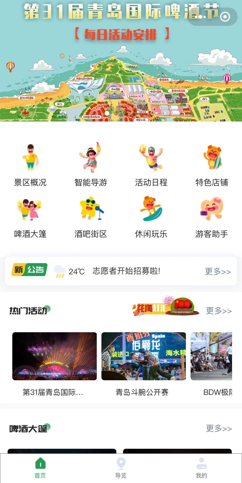 7月16日上午10點,第31屆青島國際啤酒節(jié)金沙灘啤酒城盛大開城,一年一度的狂歡盛宴再度開啟,為了讓大家更好的來“嗨”,金沙灘啤酒城特別推出電子導(dǎo)覽程序,帶大家玩轉(zhuǎn)青島國際啤酒節(jié)!