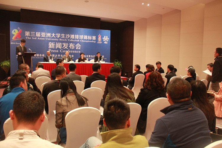 4月19日,2014年第三屆亞洲大學(xué)生沙灘排球錦標(biāo)賽新聞發(fā)布會(huì)在青島靈山灣旅游度假區(qū)城市陽(yáng)臺(tái)福朋喜來(lái)登大酒店舉行。隨后,亞大體聯(lián)全部常委實(shí)地查看了比賽場(chǎng)地。亞大體聯(lián)主席、教育部原副部長(zhǎng)章新勝,亞大體聯(lián)第一副主席AL-HAI Omar A,亞大體聯(lián)副主席CHEN Kunning,亞大體聯(lián)秘書(shū)長(zhǎng)CHOW Kenny,區(qū)領(lǐng)導(dǎo)孫大貴等出席。