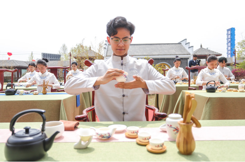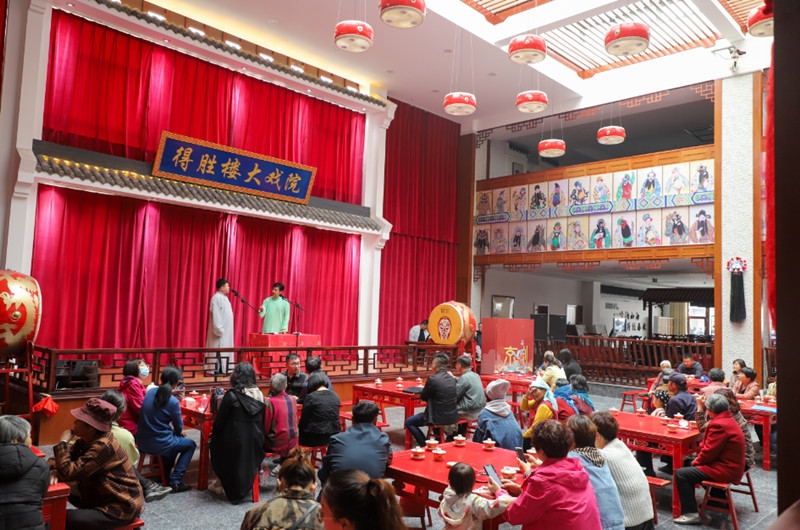 德勝樓大戲院里,一場傳統(tǒng)相聲《論捧逗》引得觀眾陣陣掌聲;新時代文明結(jié)婚禮堂里,30對新人互許愛的誓言,共赴婚姻的殿堂;沏茶、賞茶、聞茶、飲茶、品茶,南茶北引展覽館中,茶藝師們正展示著傳統(tǒng)茶藝;抹茶學(xué)院里,抹茶文化的歷史講解正如火如荼地進行著,游客們學(xué)習(xí)之余品鑒著新款的抹茶美食......